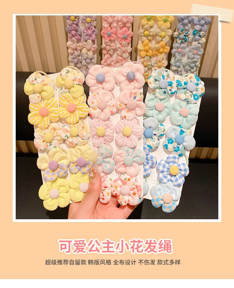 10 Pcs/Set New Baby Girl Cute Colors Flower Hair Bands Ponytail Holder Chilren Soft Scrunchies Rubber Kids Hair Accessories