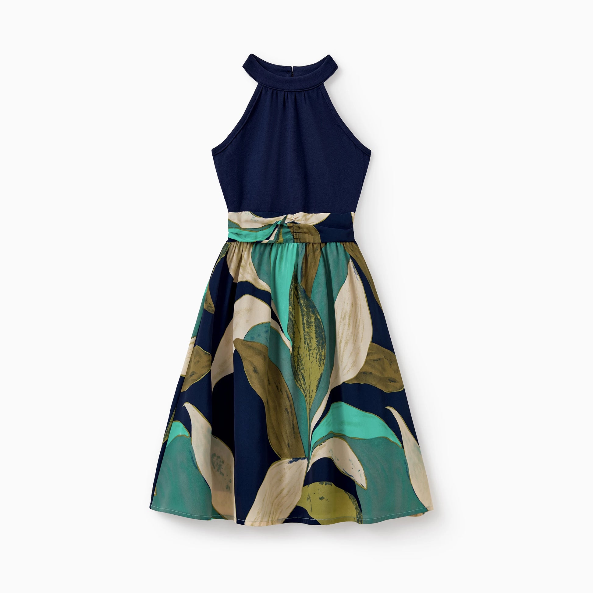 PatPat Elegant Navy Blue Green Leaf Print Girls' Dress