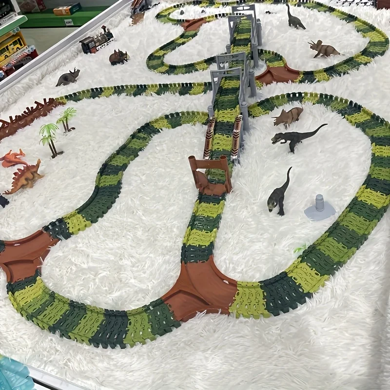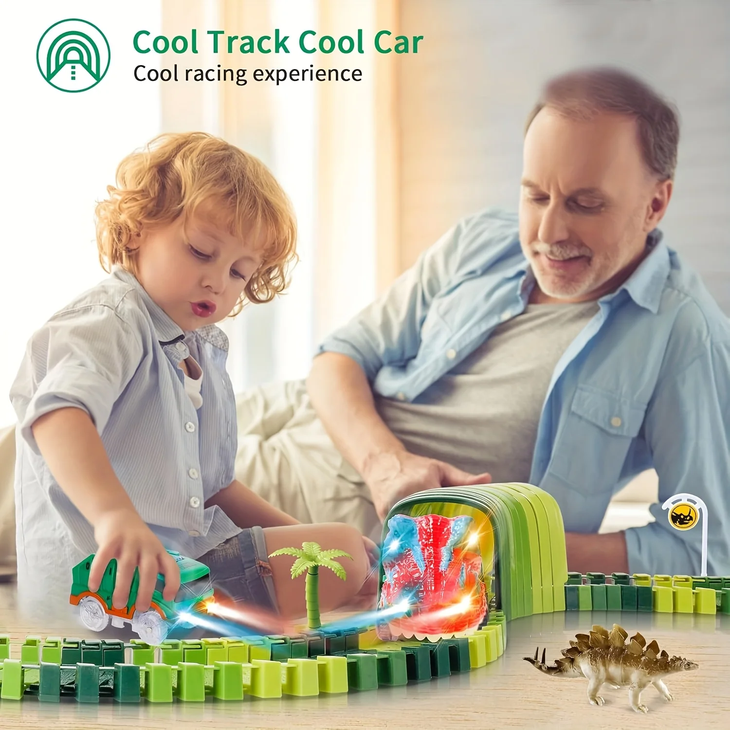 Special Offer: Children's Dinosaur World Track Cars, Toy Track Cars For Boys And Girls, Indoor Race Assembly Track Car Games, Pe