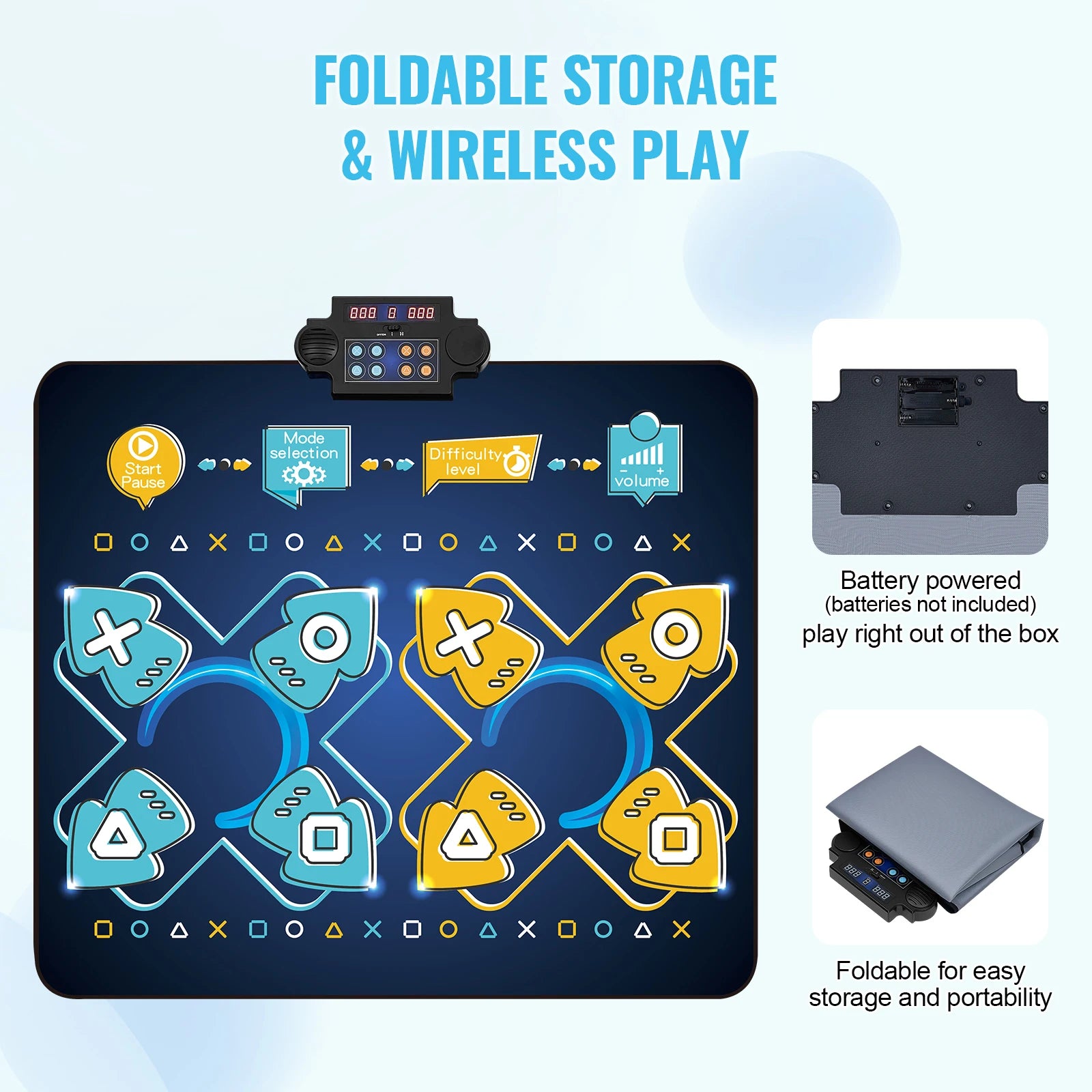 Easy to Store and Carry: Its lightweight and supple construction allows for effortless folding and convenient storage. Powered by 3 AA batteries (not supplied), the wireless and portable design enables dancing escapades without the encumbrance of cords, anytime and anywhere.