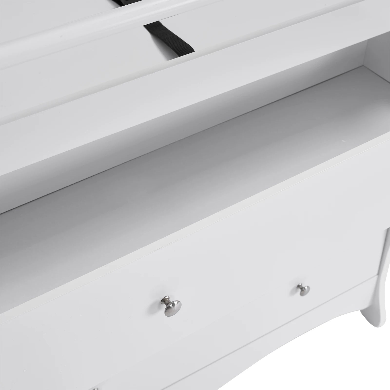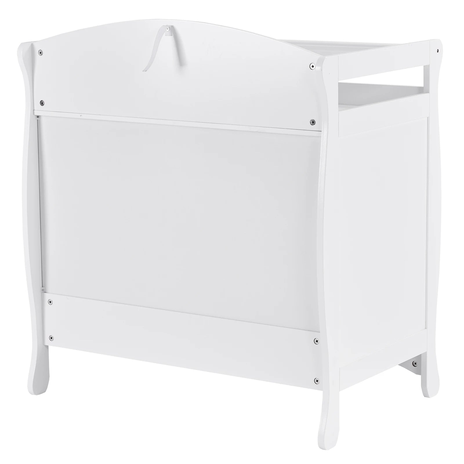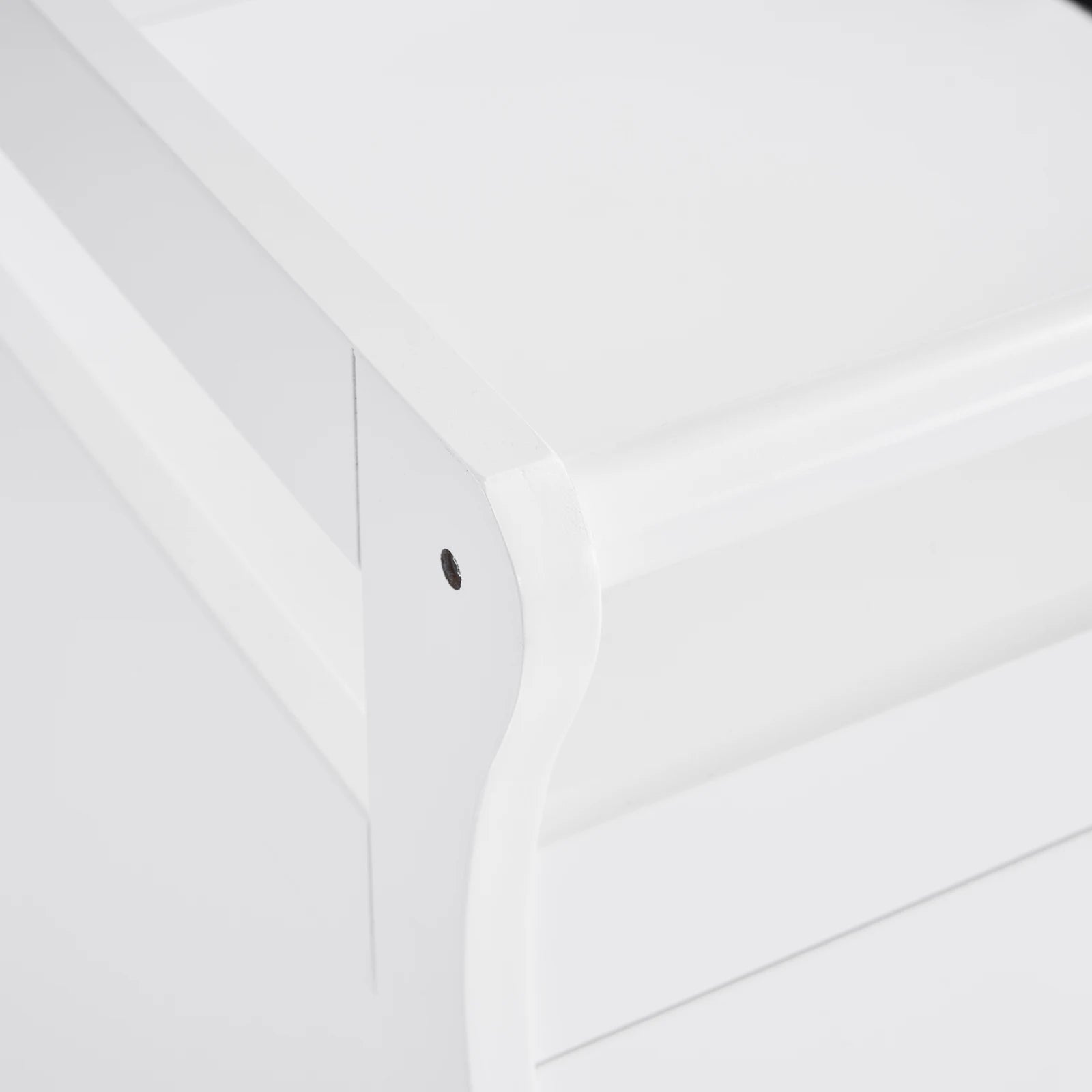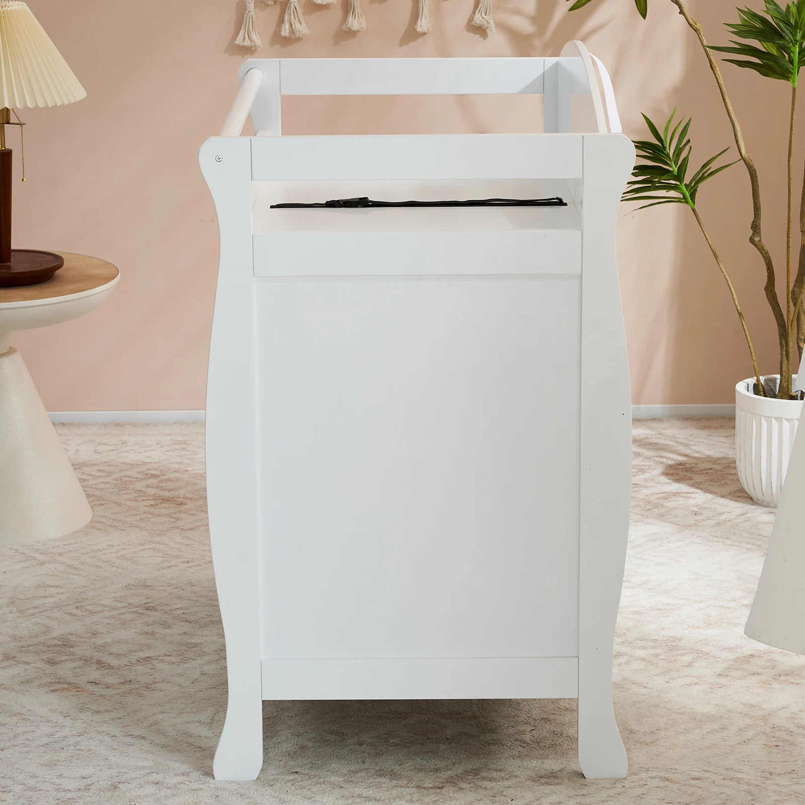 White three-drawer baby crib with safety rail, wooden baby crib with storage combination