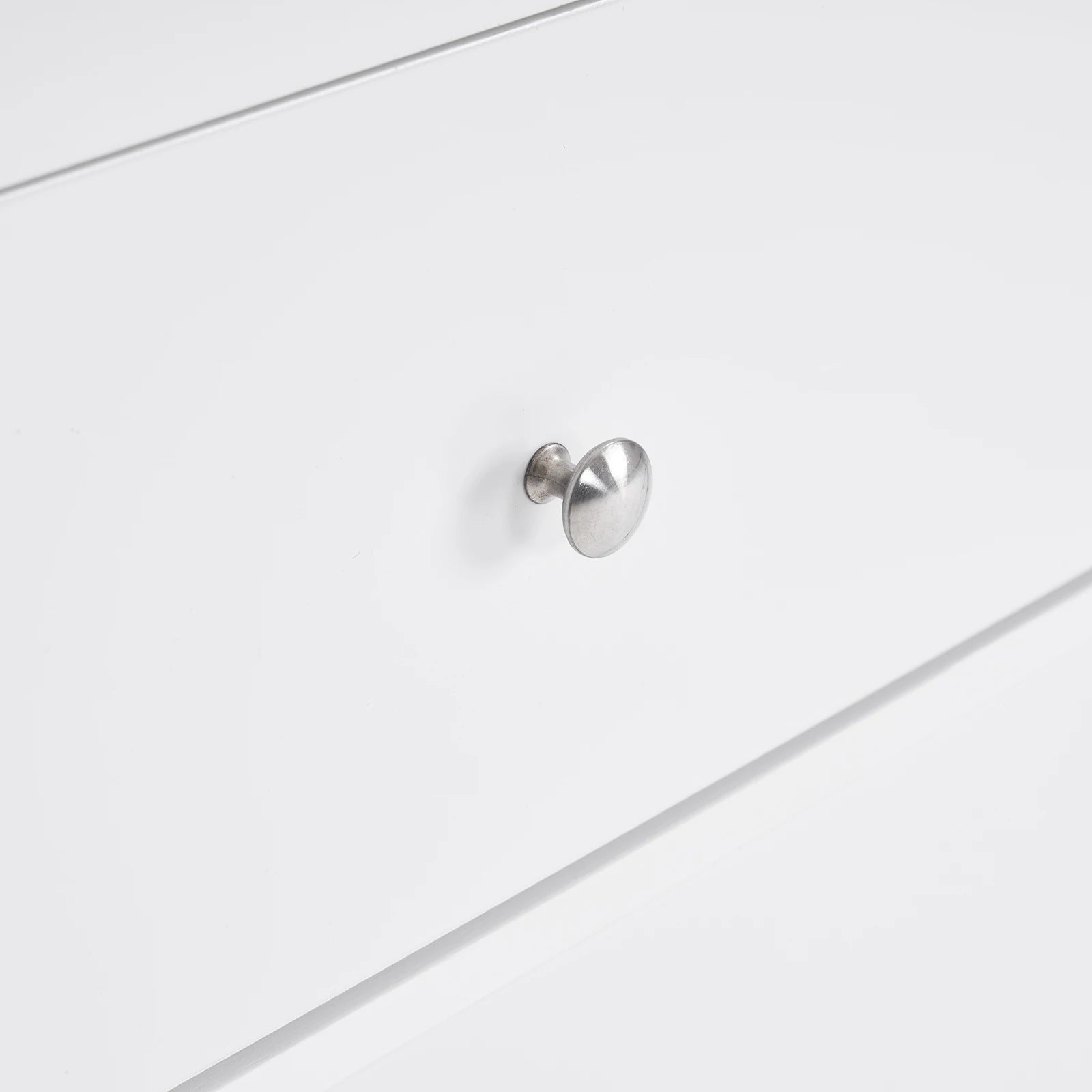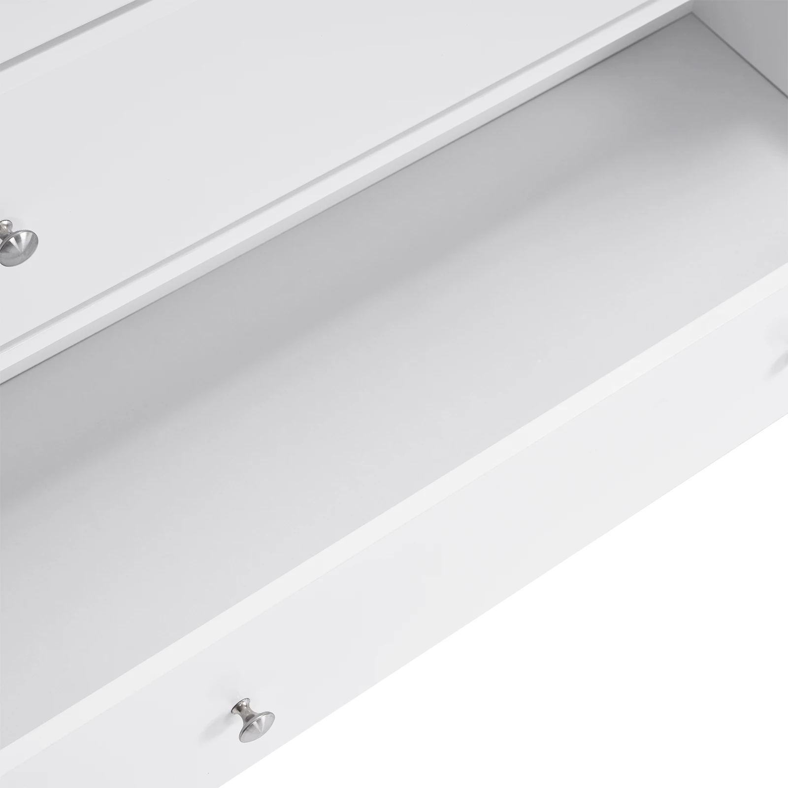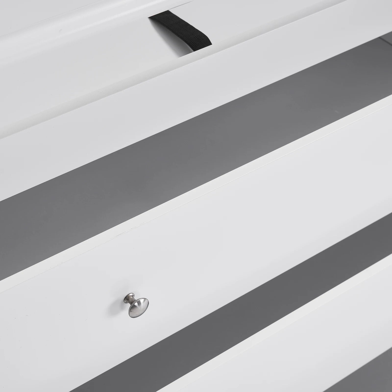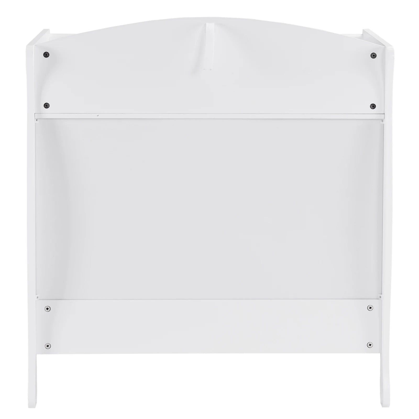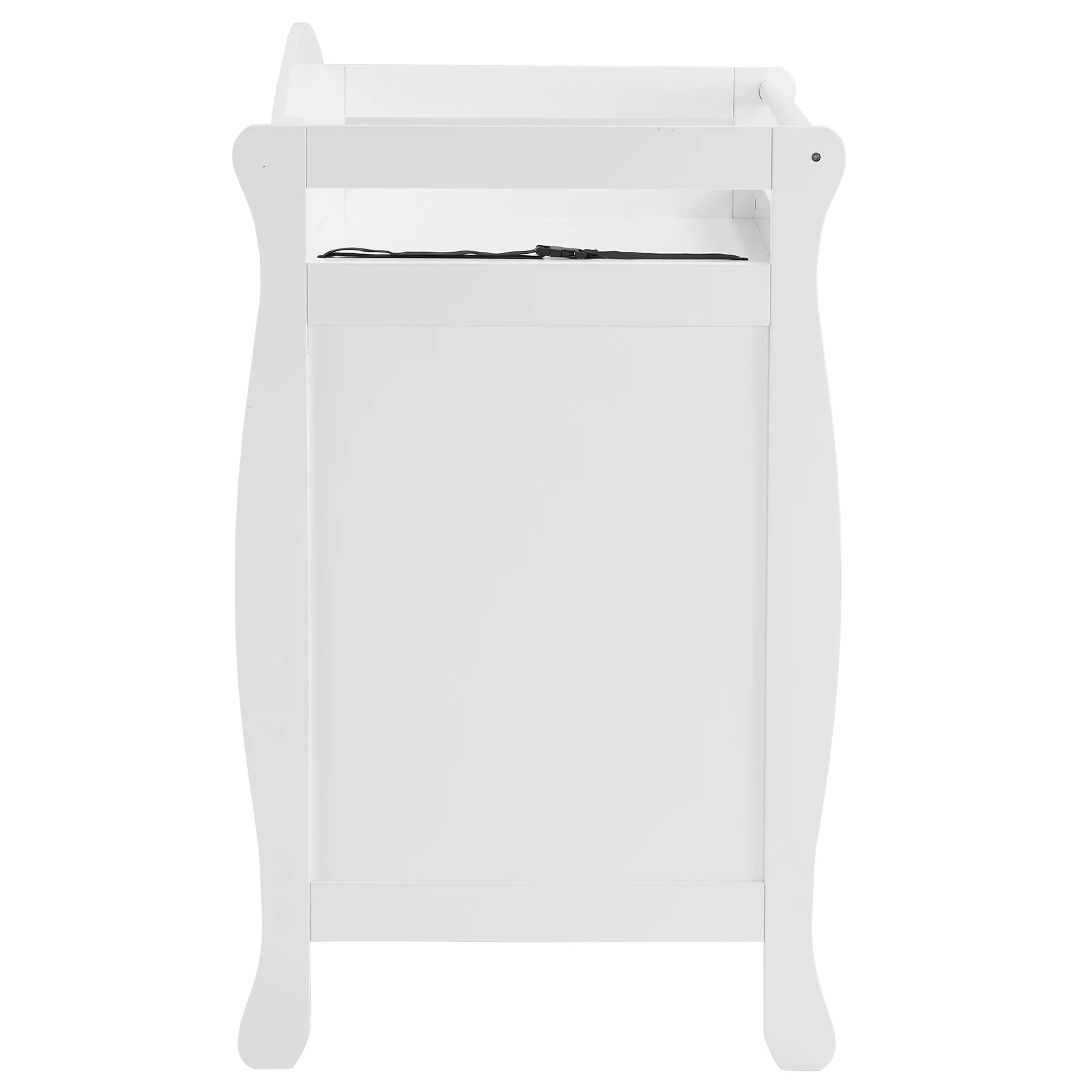 White three-drawer baby crib with safety rail, wooden baby crib with storage combination